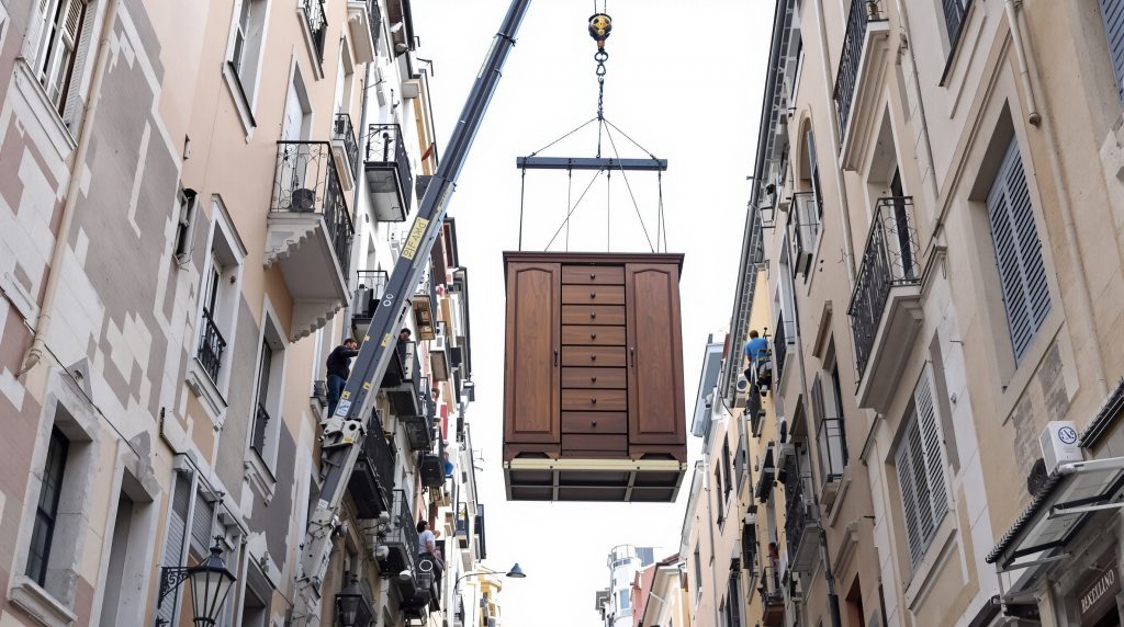 Mudanza en Madrid: cuándo usar grúa por el balcón y cuándo no